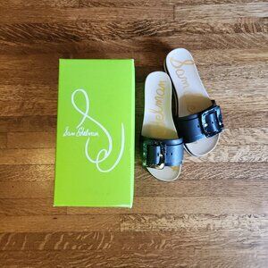 Sam Edelman Black Sandal Slide Ariane Marble Buckle Leather Platform Size 6.5
