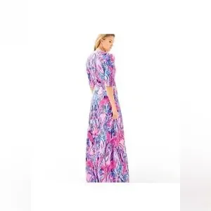 LILLY PULITZER MARVISTA WRAP MAXI DRESS In MULTI FREE SPIRIT Print Size Medium.
