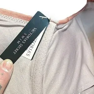 This Victoria’s Secret Swim Essential bikini top features a shimmering rose gold finish with a flattering twist-front design and push-up cups. Adjustable straps and secure back closure offer both style and support — perfect for poolside or beach wear. New with tags!