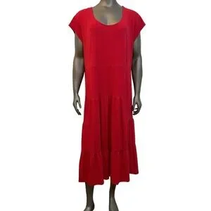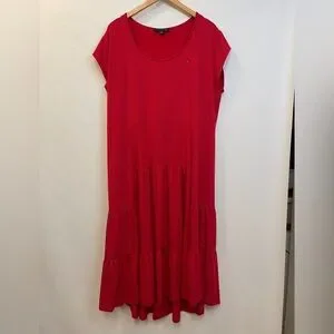 Tommy Hilfiger Dress Women’s XXL Red Polka Dot Tiered Midi Stretch