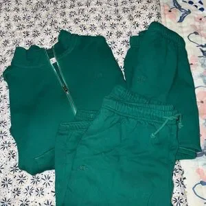 Comfortable green half zip sweatshirt with pockets with matching shorts and joggers. Ideal for everyday wear.