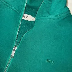 SET Active Palm Emerald Green Half Zip Sweatshirt Short and Jogger Set Large