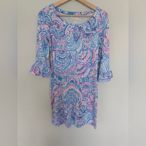 Lilly Pulitzer Shift Dress Sz XS UPF 50+ Sophie Ruffle Happy As A Clam Stretch