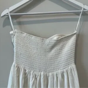 Bridal, bride, wedding, white wedding guest dress, white wedding dress, gown, formal, nice, casual, stretchy, smocked, Abercrombie strapless dress, white strapless dress, strapless sundress, sun dress, summer, white party, white party dress, summery, sunny, happy, classic, classy, casual sun dress, errands, Europe, European, Paris, Parisian, Mexico, cruise, white dinner, formal night, pageant, ball, navy ball, army ball, prom, homecoming, flowy maxi dress, girly, feminine, white rehearsal dinner dress, quince