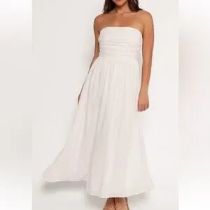 Petal & Pup Kayt Strapless Linen Blend Maxi Sundress White Bridal Bride Wedding