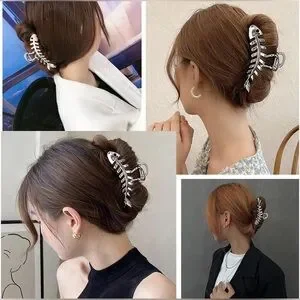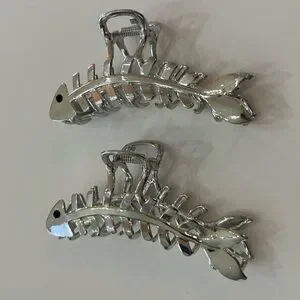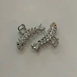 Stylish and unique silver fish bone hair clip, perfect for adding a touch of elegance to your look.