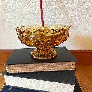 VTG Fenton Amber Glass Hobnail Candle Holder Bowl Centerpiece Bowl Decorative