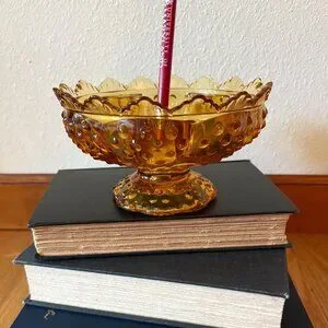 EUC VTG Fenton Amber Glass Hobnail Candle Holder Bowl Centerpiece Bowl Decorative Bowl