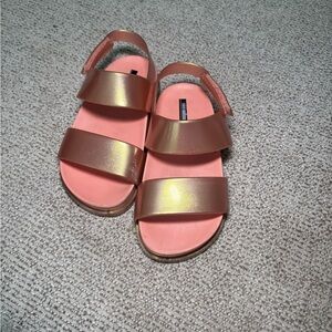 Stylish Mini Melissa sandals with pink base and gold straps. Ideal for fun outings.