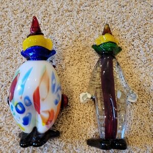Great condition. Charming Murano glass clowns with vibrant colors. Features playful designs and intricate details. Perfect for collectors.