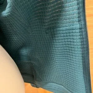 Great condition. A couple tiny white spots in fabric weave on sleeve. See pics. Otherwise no flaws, zipper works great. Excellent.