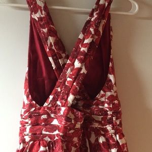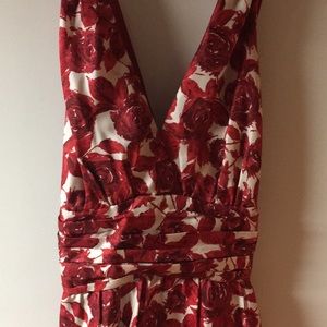 This stunning 100% silk floral dress features a vibrant red pattern, perfect for any occasion. Its elegant design offers a flattering fit, making it a must-have addition to your wardrobe. It is a medium but fits small more like size 4/6.