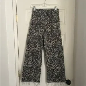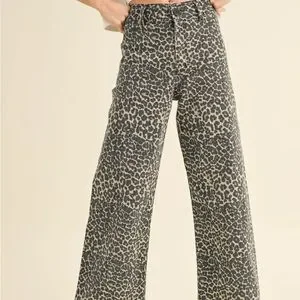 Stylish wide leg pants featuring a bold leopard print. Perfect for adding a touch of wild elegance to your wardrobe.