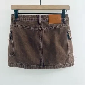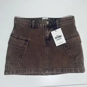 Princess Polly Zakai Cargo Denim Mini Skirt, Brown, Women’s Size 2, NWT