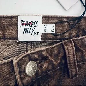 New With Tags Princess Polly Zakai Cargo Denim Mini Skirt, Women’s Size 2, in color brown. Mid rise mini skirt, belt looped waist, zip and buttoning fastening, twin hip pockets, branded patch at back. Non stretch and unlined. Sealed, stored, and shipped in cellophane garment bag shown in pictures.