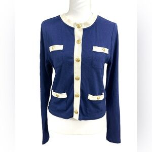 Jcrew Ribbed Light Weight Cardigan Sweater Nautical Prep Preppy Old Money LARGE