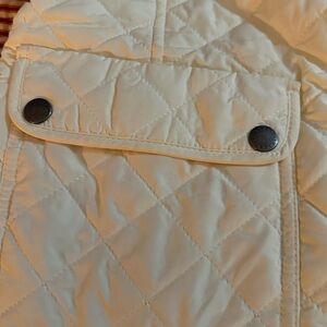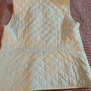 The Talbots Cream Quilted Vest features a sleek diamond quilting pattern, offering a stylish and textured look. Its lightweight design makes it an ideal choice for transitional seasons, providing both comfort and versatility.
