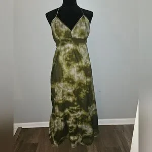 New York & Company Green & White Tie-Dye Maxi Halter Dress in Size XL - NWOT
