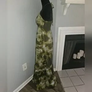 New York & Company Green & White Tie-Dye Maxi Dress - Size XL NWOT