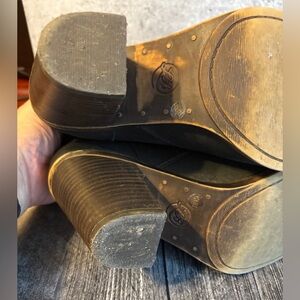 These boots are in excellent used condition and the soles show wear and the heel on one of the boots shows some wear. The heel on the back of the right boot has some minor scratching, but overall they have plenty of life still in them.