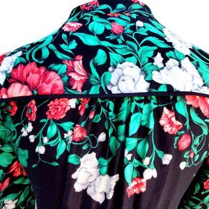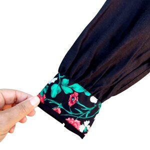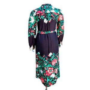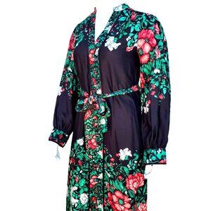Anthropologie Bohemian Midi Shirt Dress 12 Long Sleeve Black and Green Floral