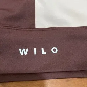 Wilo Color Block Brown Cream Athletic V Neck Polyester Spandex Sports Bra XS