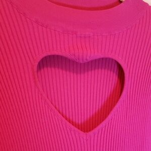 Turn heads and steal hearts in this ultra-sleek Heart For You Mini Dress in a vibrant hot pink hue. Crafted from a luxe stretch rayon-blend knit, this body-contouring piece features a high neckline, sultry front cutout, and long sleeves for that bold-meets-refined allure. The flattering ribbed texture enhances your curves while the mini length adds a playful edge. A dazzling statement piece perfect for a night out, date night, or when you just want to feel unstoppable.