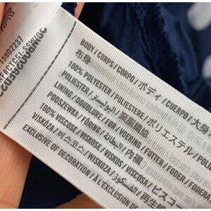 Abercrombie & Fitch presents a chic long-sleeve mini dress in navy blue with a playful polka dot pattern. The sweetheart neckline and ruffle accents add a touch of elegance, while the flounce style and tiered design create a playful vibe. Perfect for various occasions, this dress is suitable for travel, weddings, holy communions, parties, and even casual or business events. Made with polyester material, this dress is machine washable for easy care. The dress is available in size XL, which is a regular fit for women. This dress is a great addition to any wardrobe, offering a combination of style and comfort.