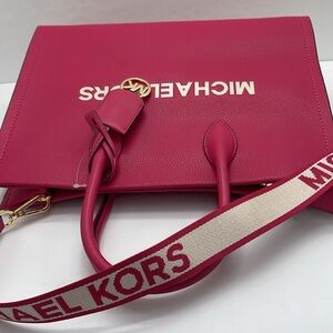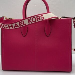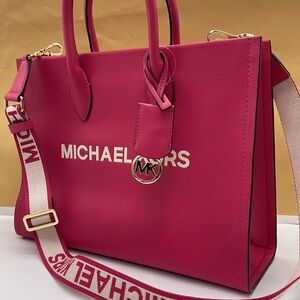 Michael Kors Mirella Md Pebbled Leather Tote Shopper Bag MK EW Electric Pink
