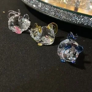 Glass Mouse Figurines Set. Pink Yellow and Blue accents