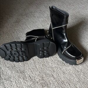 Step out in style with these sleek black patent leather ankle boots. Perfect for any occasion, these boots offer both comfort and fashion-forward design.