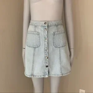 BDG Light Blue Denim Snap Front Pocket Mini Skirt Size Small