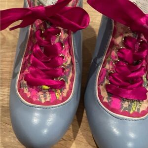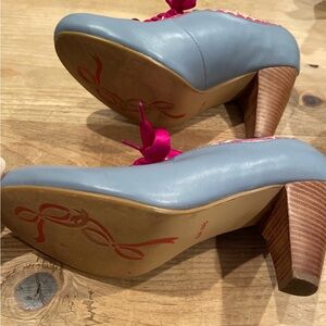 Poetic Justice London Blue Pink Floral Leather heels feminine cottagecore 8.5M
