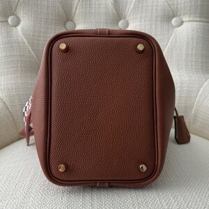 Barely used, designer-inspired Picotin 18 small tote bag in Gold (brown) color. Genuine leather. Purchased at Gotomall in Seoul. No brand or logos on the bag. Comes with twilly, lock and key, and insert.