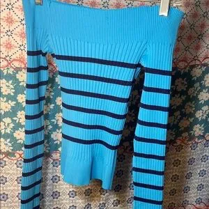 Blue and Black Striped Off-Shoulder Sweater