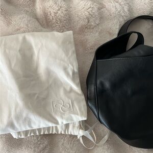 Sleek black leather bag. Minimalist design. Perfect for everyday use.