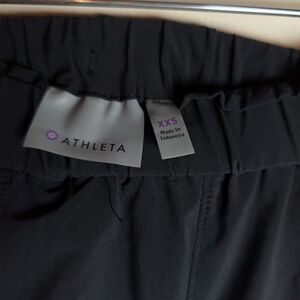 Atletha Women's black shorts as pictured. Stylish black shorts by Athleta. Features elastic waistband and side pockets. Perfect for casual wear.