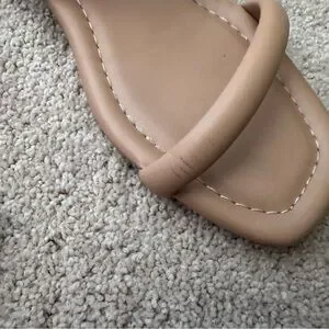 Chic tan sandals with a stylish strappy design. Perfect for any occasion. A new day by Target. Good used condition. Some light scuffing shown in picture. 1” heel.