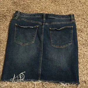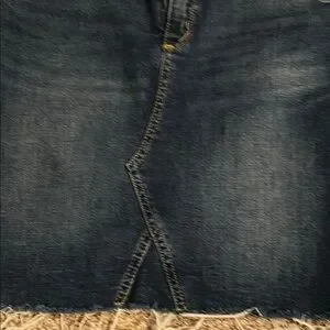 Stylish blue denim pencil skirt. Features frayed hem and classic design. Perfect for casual wear.