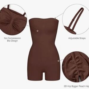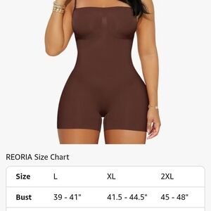 This sleek and minimalist brown shapewear bodysuit by ReoRia offers a seamless fit with its stretchy, smooth fabric. Designed for comfort and style, it provides a form-fitting silhouette perfect for layering or wearing alone.