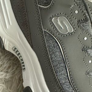 Look out for number one in classic comfortable style with the SKECHERS D'Lites - Me Time shoe. Smooth trubuck leather and heathered jersey knit fabric upper in a lace up sporty casual sneaker with stitching and overlay accents. Air Cooled Memory Foam insole.