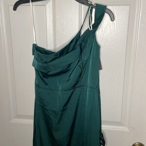 Source of Love Emerald Green Satin One-Shoulder Maxi Dress NWT Sz M
