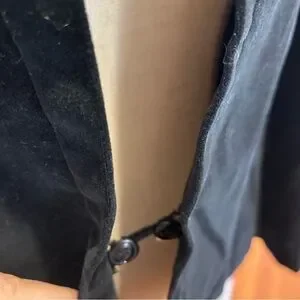 Indulge in the luxurious vintage sophistication of the 1990's with the Neil Martin Black cotton velvet cropped jacket. Crafted from sumptuous cotton velvet, this jacket exudes an aura of timeless elegance and refined charm and perfect for any event or to use a more relaxed lagenlook vibe. With its collarless design and cropped silhouette, this jacket has a one concealed button closure offers a modern twist on classic tailoring. The absence of a collar lends a sleek and minimalist aesthetic, while the cropped length adds a contemporary edge to the overall look. Whether paired with tailored trousers for a chic office look or layered over a cocktail dress for a night out, the Neil Martin Black Cotton Velvet Cropped Jacket is sure to elevate any outfit with its understated sophistication and timeless appeal. EUC in a size 8.