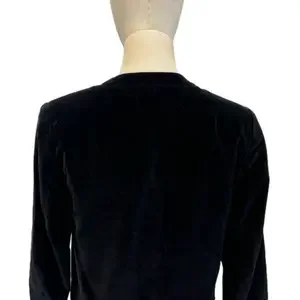 90s NEIL MARTIN BLACK VELVET BLAZER COTTON CROPPED COLLARLESS & 3/4 SLEEVES SZ 8
