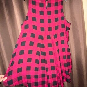 The Torrid tank top features a striking pink and black pattern, offering a bold and modern look. This sleeveless top is designed with a boxy, asymmetrical style that adds a unique flair to your wardrobe. Crafted from lightweight fabric, it ensures comfort and ease of movement, making it a versatile choice for any occasion.