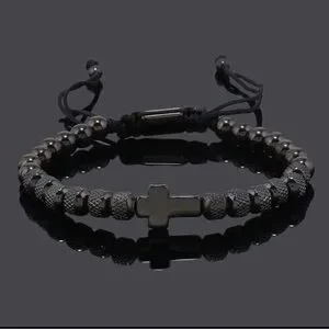 Stylish black beaded bracelet for men, perfect for any occasion.