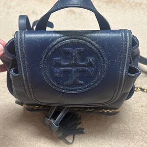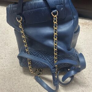 Tory Burch Blue Quilted Backpack with Tassel Detail