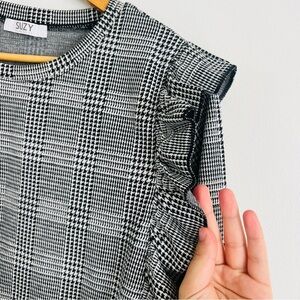 Suzy Shier Women Top Plaid Print Ruffle Shoulder Trim Lantern Sleeve Blouse L
