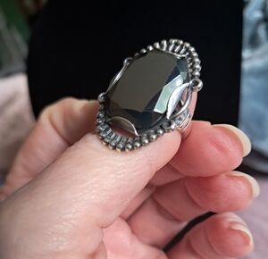 Vintage 1960s Sterling Silver Hematite Hallmarked Bell Trading Post Navajo Ring