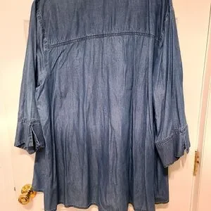 MRtha Stewart-3X- Blue Denim Women's Button Down Top. Perfect for casual outings, this top offers comfort and a chic look.